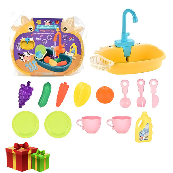 📦 Balení obsahuje:Dřez, vodovodní kohoutek, zelenina, ovoce, nádobí, mýdlo, koš na sušení prádla