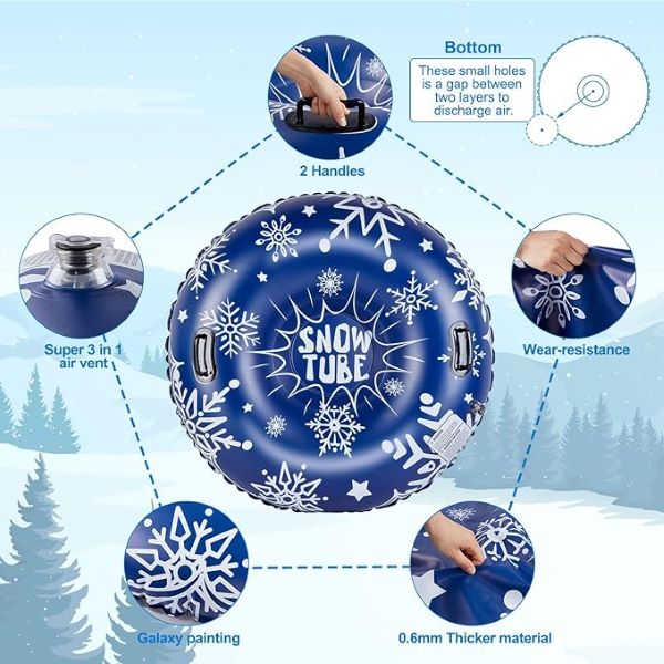 Se sněžným kruhem si můžete užívat nepřetržité sáňkování po celý den! Je zcela bezpečný a pohodlně přenosný, takže je ideální volbou pro rodinné výlety nebo lyžařské pobyty.