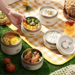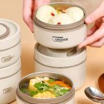 Vychutnejte si teplé domácí jídlo, ať jste kdekoli, s touto sadou vícevrstvých nádob na jídlo.