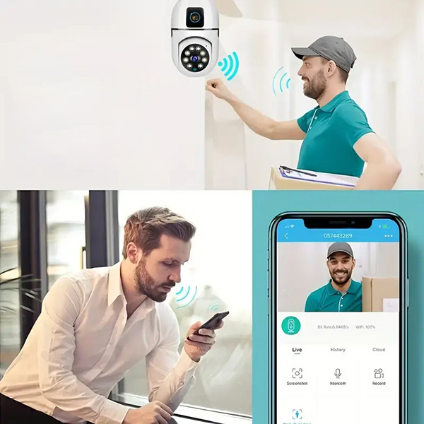 Díky interkomovému reproduktoru BULBCAM můžete mluvit přímo přes mobilní telefon s kýmkoli za dveřmi. Můžete také dávat pokyny doručovatelům nebo dokonce navigovat hosty, pokud jste zaneprázdněni nebo pryč, což usnadňuje správu návštěv odkudkoli.