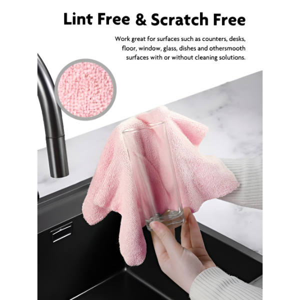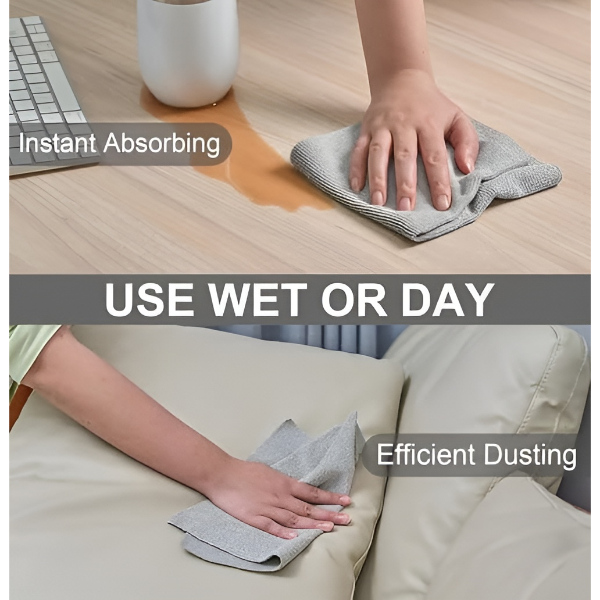 Vysoce kvalitní utěrka z mikrovlákna absorbuje vodu, oleje, prach a skvrny a zanechává povrchy dokonale čisté bez šmouh.