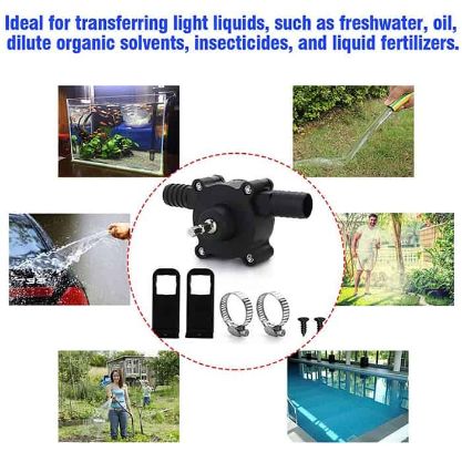 • Vysoce výkonné vodní čerpadlo se připojuje k ruční vrtačce pro rychlé čerpání a nalévání kapalin.