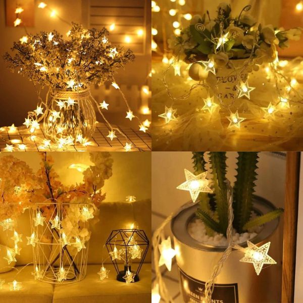 LED světelné řetězy s hvězdami lze snadno umístit nebo zavěsit na stěny, okna, dveře, podlahy, stromy, klavíry, zahrady atd. Můžete je použít k výzdobě ve svém oblíbeném tvaru a stylu. Skvěle se hodí pro přidání výbuchu uklidňujících barev do dětského či teenagerského pokoje nebo dokonce na vysokoškolskou kolej. Také je můžete zavěsit nad verandu, dveře, okno, čelo postele a nebo je použít jako nástěnnou dekoraci.